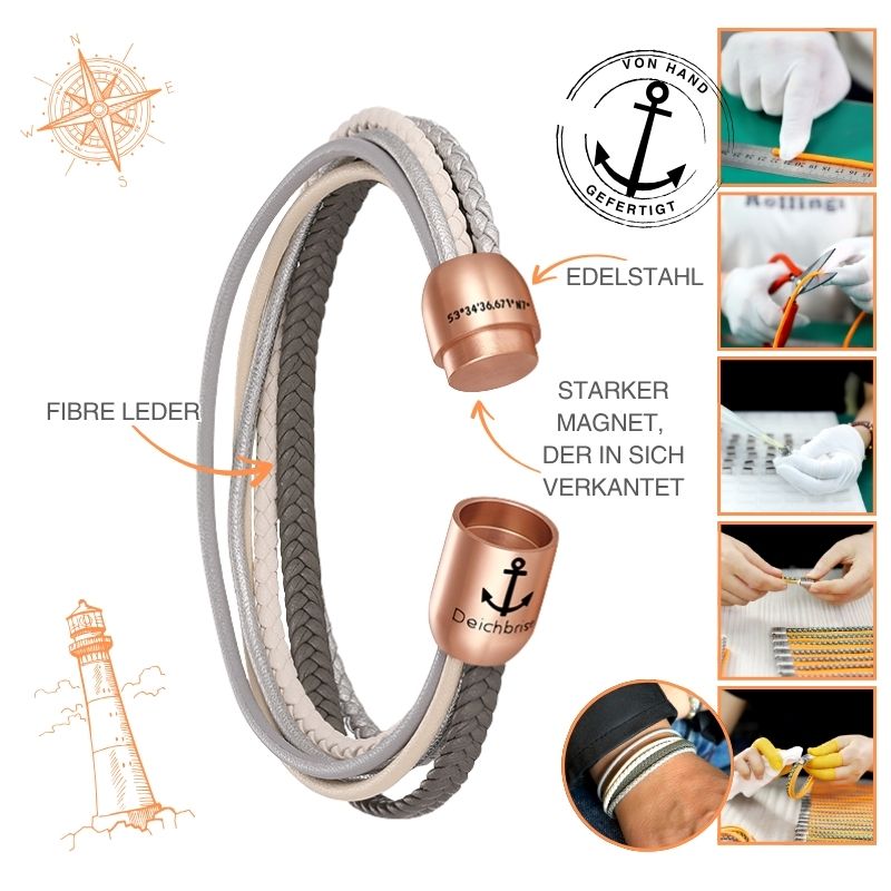 Dieses maritime Multistrang Armband aus Fibre Leder vereint maritimen Minimalismus mit moderner Lässigkeit – perfekt für alle, die natürliche Eleganz lieben. Ob beim Spaziergang am Strand, im Alltag oder beim Dinner am Hafen – dieses Armband begleitet dich mit zeitlosem Stil und dezentem Küstenglanz. Kombiniere es zu Jeans und T-Shirt für einen coolen Look oder als stylisches Upgrade zum Business-Outfit.