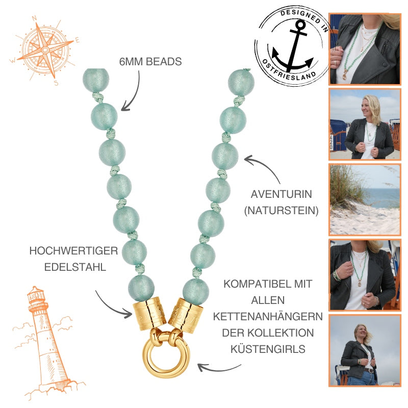 Kette Aventurin 6mm (mit Rund-Karabiner) aus Edelstahl & Aventurin-Beads