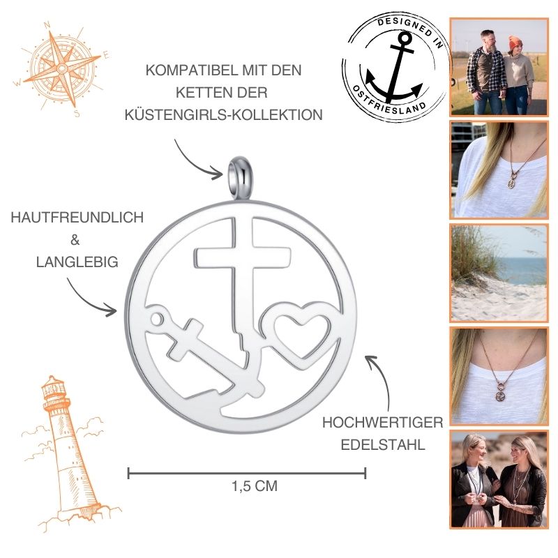 Kettenanhänger Glaube Liebe Hoffnung zum Kombinieren mit allen Ketten der Küstengirls-Kollektion