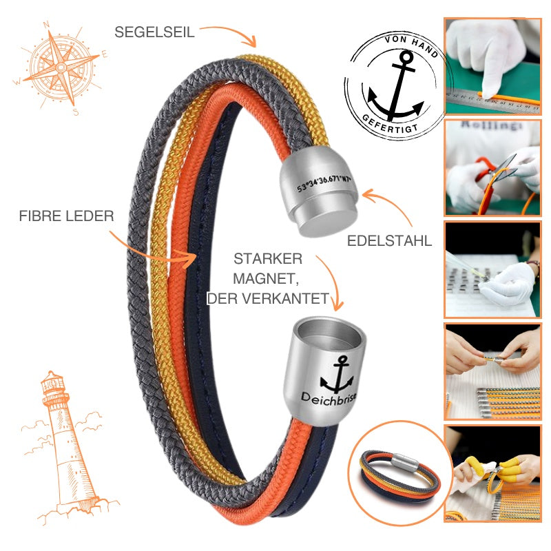Dieses Segelseil-Armband bringt dir den Sommer und das maritime Lebensgefühl direkt in deinen Alltag: robust, farbenfroh und voller Charakter.