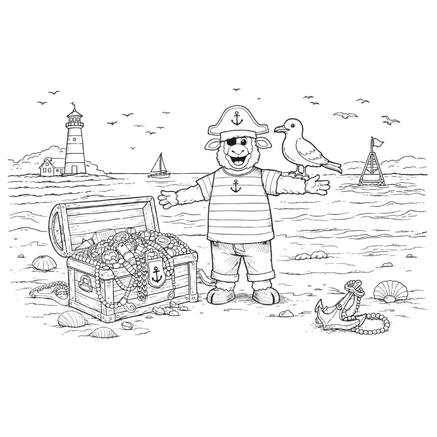 Dieses Ausmalbild schenkt kleinen Entdeckern eine kreative Pause vom Alltag und lädt dazu ein, eigene Geschichten rund um das mutige Piratenschaf Deichi zu erfinden. Ausdrucken, Stifte schnappen und schon beginnt das Abenteuer.