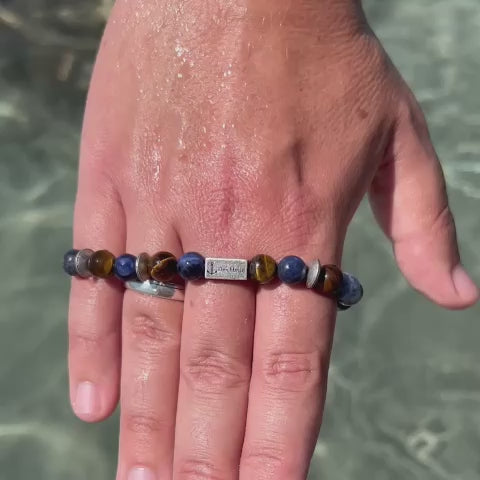 Armband Platja de Torà (Tiger-Sodalith-Steel mit Edelstahl-Kompass-Bead)