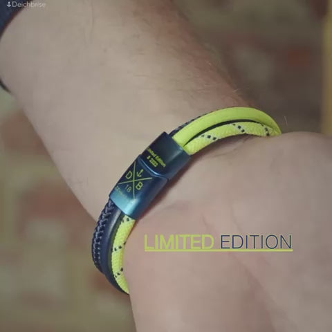 Bei diesem Multistrangarmband verwenden wir einen Edelstahlmagnetverschluss mit einer hochwertigen blauen IP-Plattierung und farbgefüllter, gelber Diamantgravur. Als Highlight findest du auf jedem Armband aus der Limited Edition eine Limited Edition Nummerierung - einzigartig und nur für coole Küstengirls und Kapitäne!